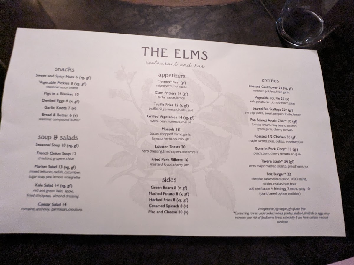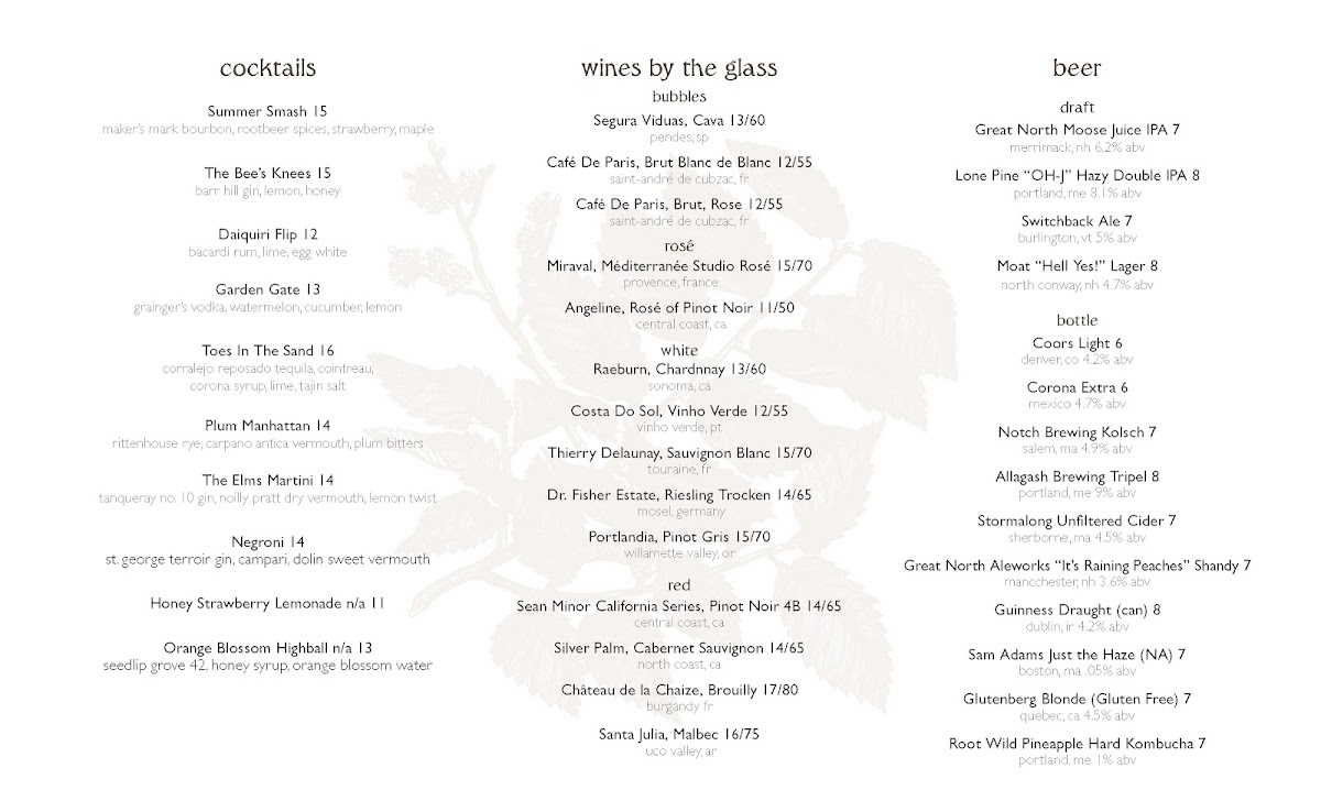 The Elms Restaurant & Bar Menu offers a delightful array of dishes that will make any meal memorable. Located at 353 Main St in New London, NH, this cozy spot combines comfort and flavor in every bite. Whether you're here for a casual lunch or a relaxed dinner, the menu features a range of options to satisfy every craving. From hearty, savory entrées to fresh, vibrant salads, there's something to please all tastes. Pair your meal with one of their signature cocktails or select from their diverse wine list to complete the experience. Each dish is crafted with care, using fresh, locally sourced ingredients that truly highlight the best of the season. Whether you're dining with family, friends, or a special someone, the menu promises a satisfying experience that brings you back for more.